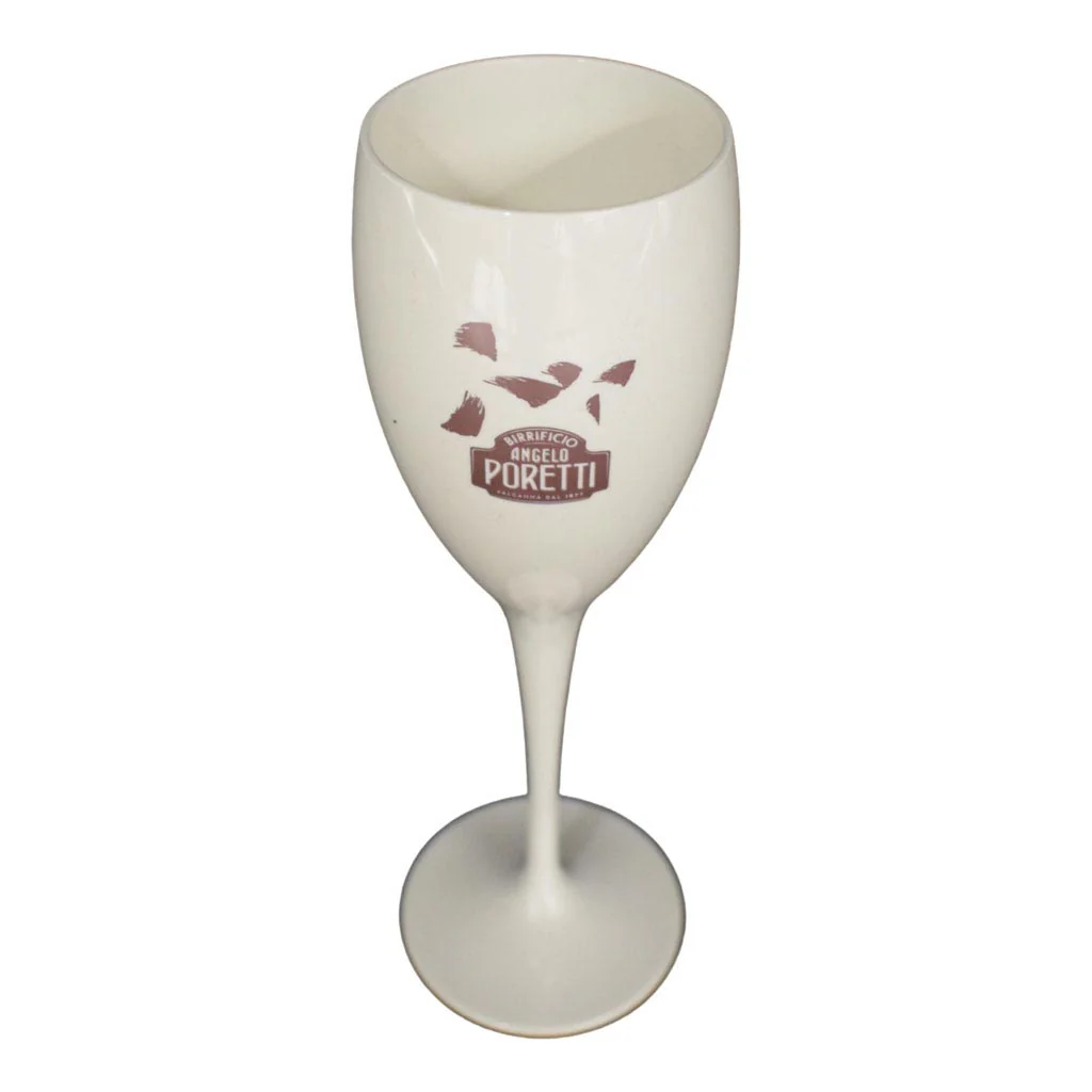 Raffinati calici bianchi lavabili brandizzati birra Poretti .